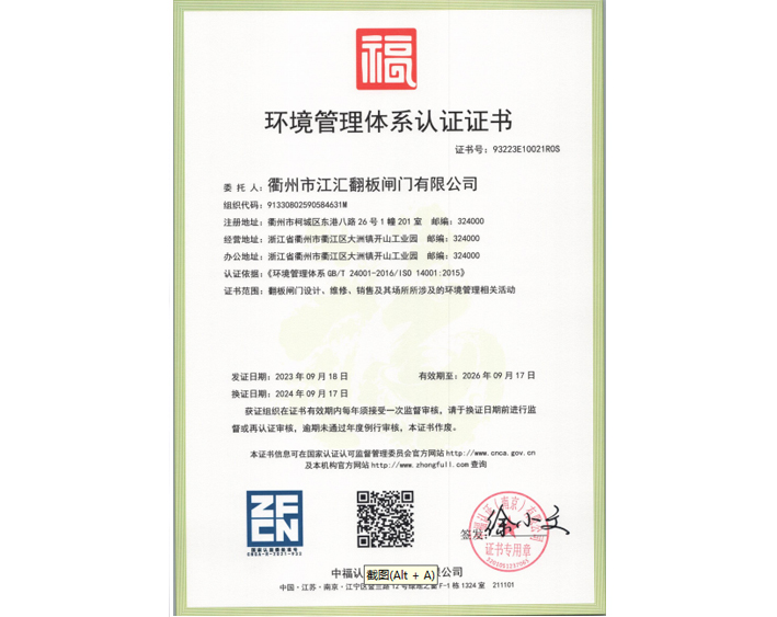 环境管理体系认证证书