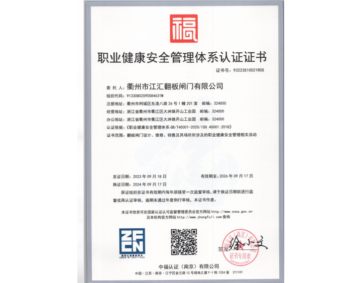 安全管理体系认证证书
